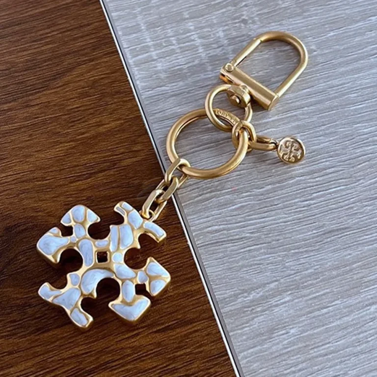 Tory Burch Gold & White Enamel Keychain – Signature Logo Charm